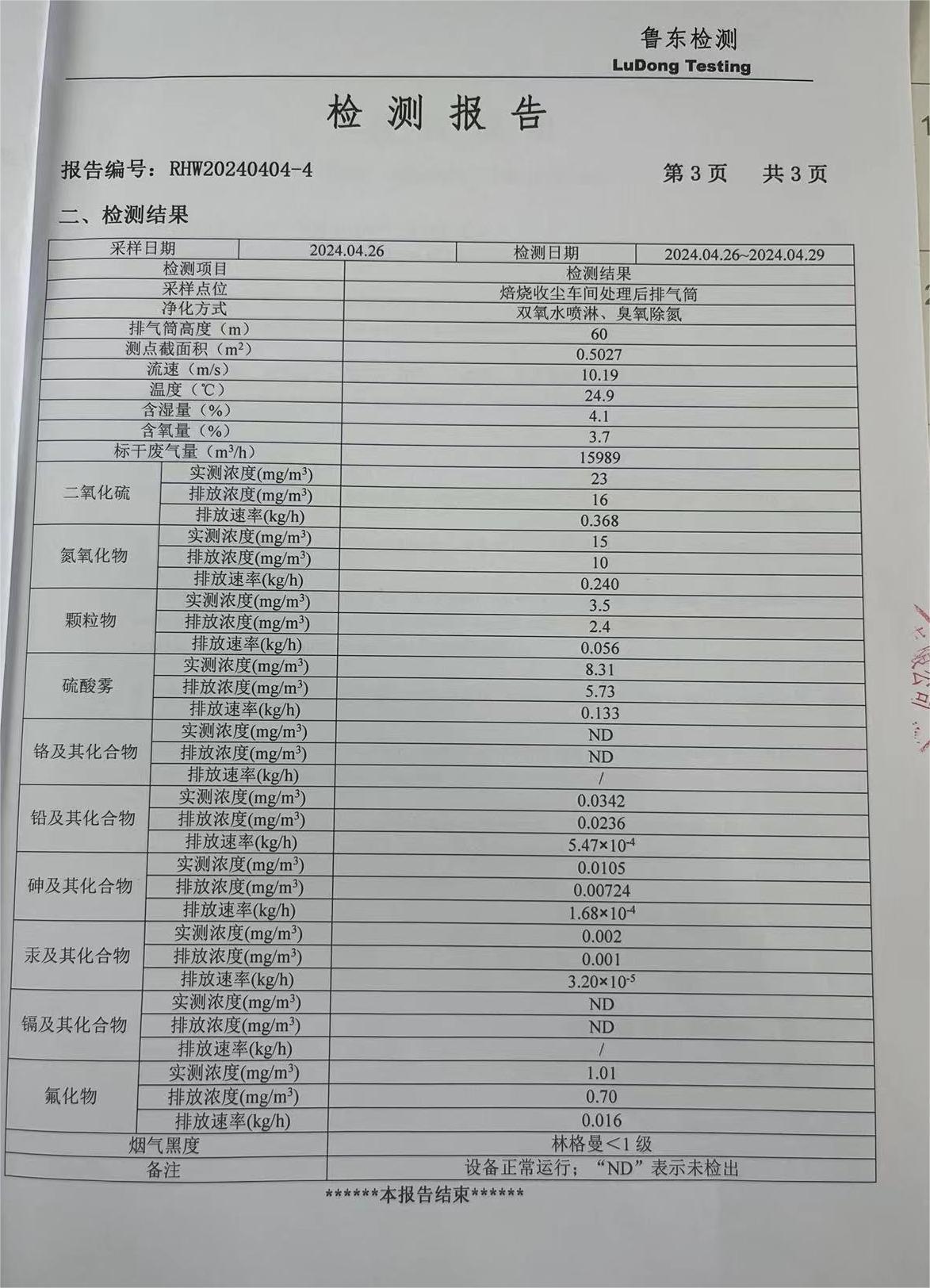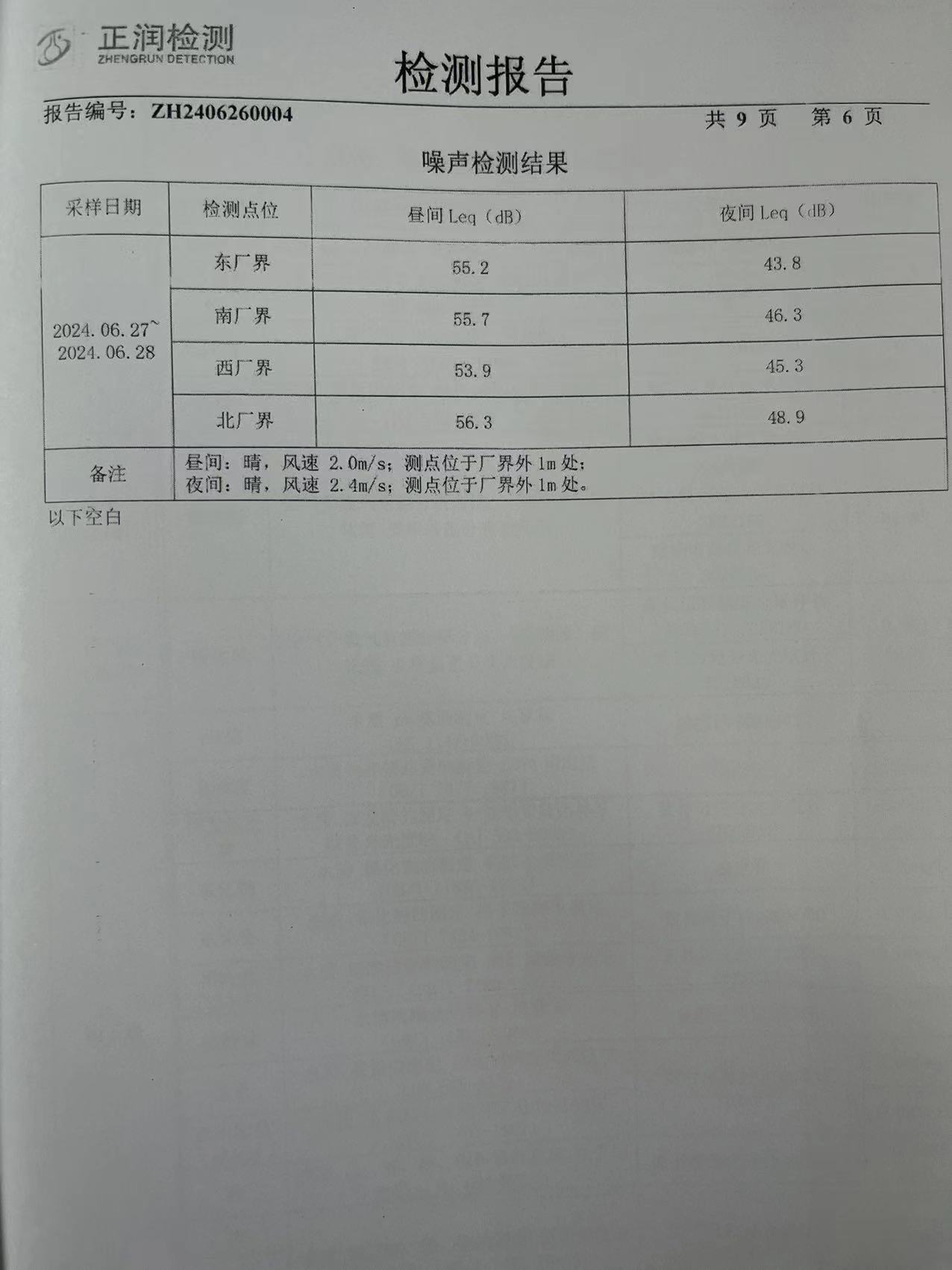 2024年一季度環境檢測報告