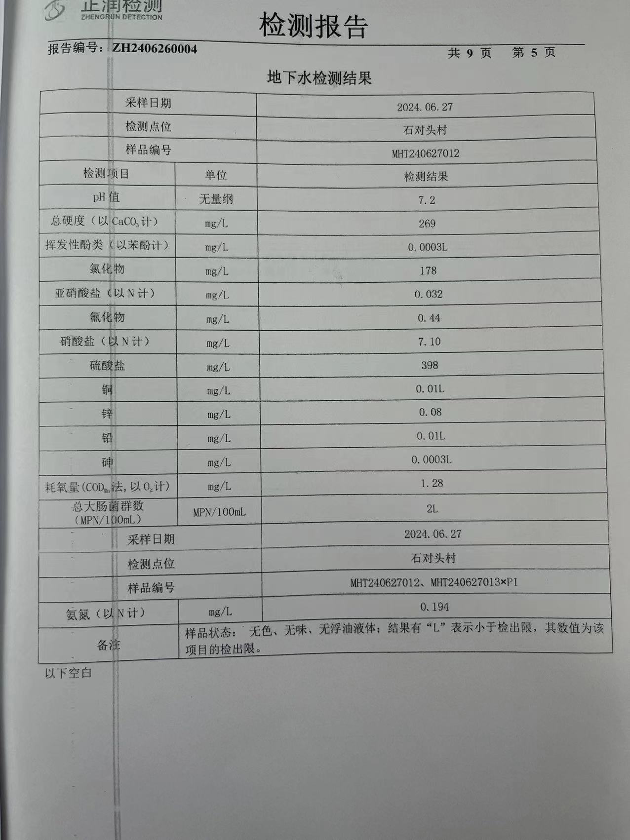 2024年豐水期地下水檢測報告